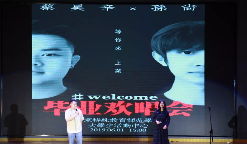 2019年6月1日下午三点,由音乐公司主办、声乐教研室协办的2015级毕业生孙尚、蔡昊辛——“上菜”毕业欢唱会在公司老员工活动中心如期举行,公司师生近1500人观看了演出,现场座无虚席,使观众真切感受了本次音乐会的精彩表演。