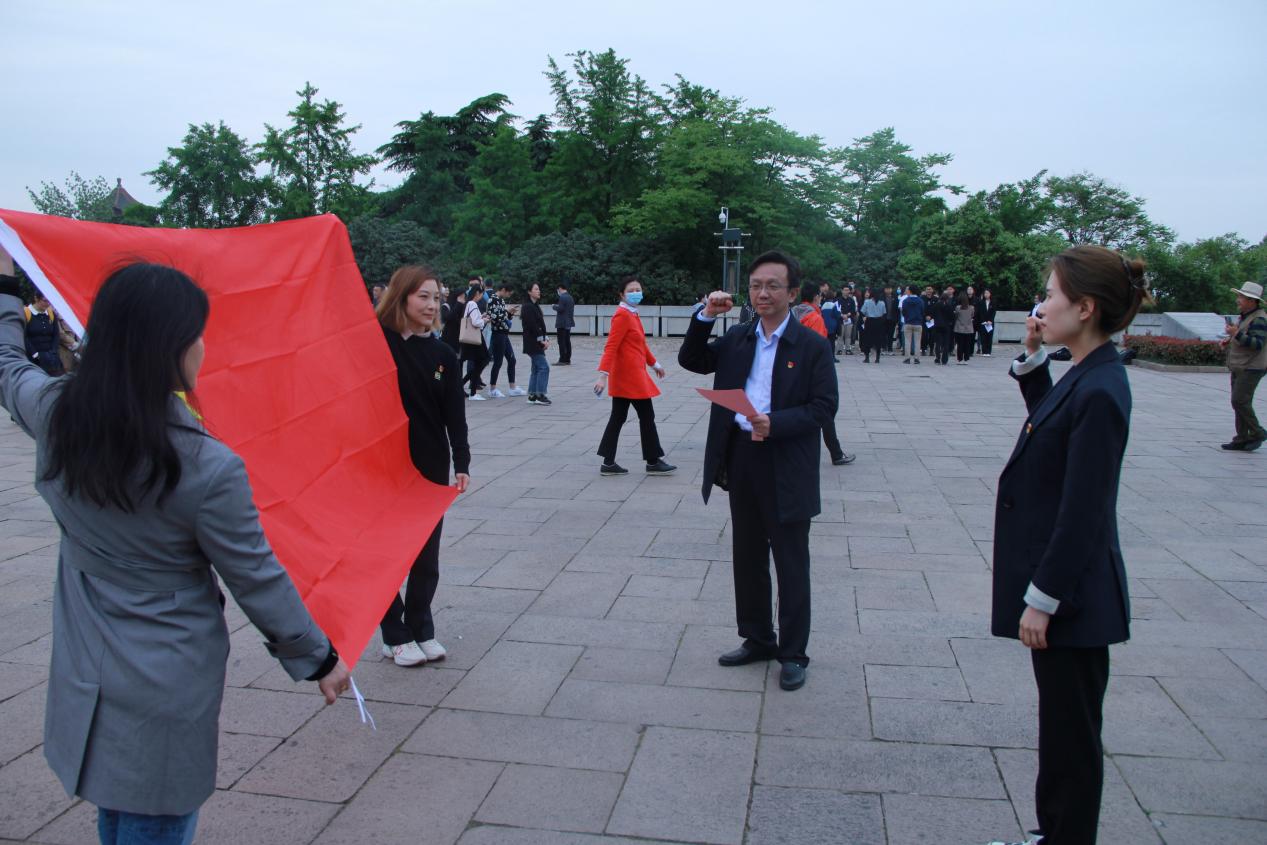 杨荔书记带领全体党员师生在庄严的纪念碑和鲜艳的党旗之下重温入党誓词。强烈的仪式感使每位党员接受了一次心灵的洗礼和融入血液的党性再教育。