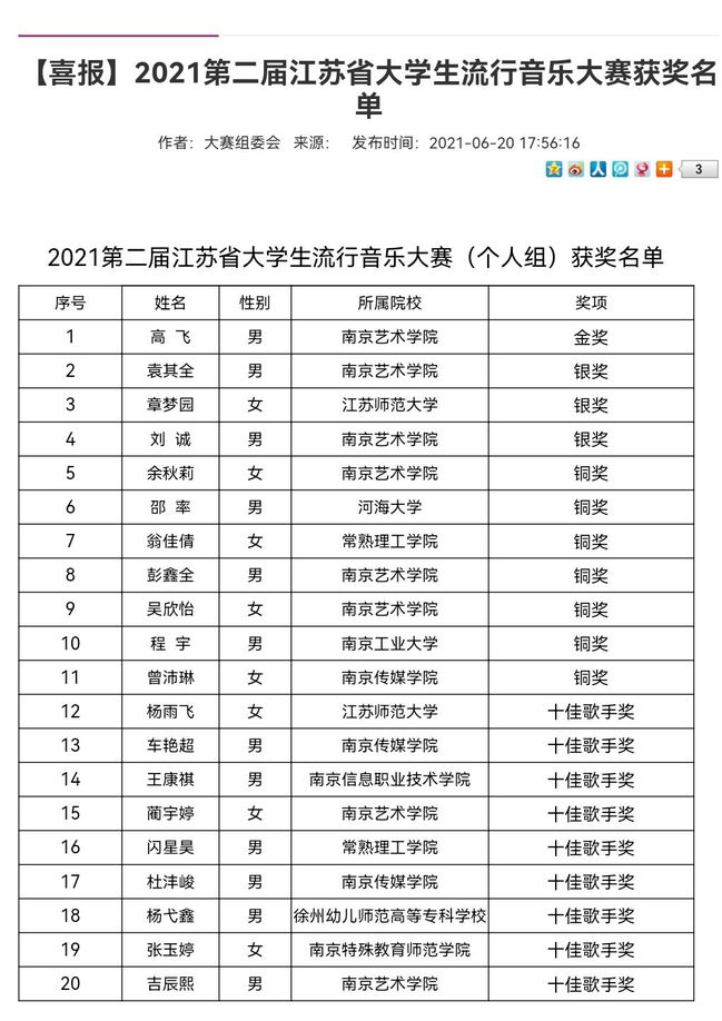 为庆祝中国共产党成立100周年,弘扬中华优秀传统文化,讴歌抗疫精神,营造积极向上的精神风貌,充分发挥校园文化的育人活动,由共青团江苏省委、江苏省员工联合会主办、南京艺术公司、江苏省流行音乐协会承办的“流金岁月、传唱经典”庆祝建党一百周年第二届江苏省老员工流行音乐大赛(复赛)在南京艺术公司举行。经海选BETVLCTOR伟德国际1946三位同学顺利入围,进入复赛,分别是1904班张玉婷、2001班张舒勋、2003班孟佳依。2021年6月18日,公司辅导员胡祖倩老师带队前往参加复赛和决赛。