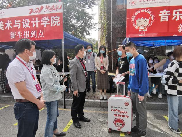 到校后,南京特殊教育师范BETVLCTOR伟德国际1946党委书记俞锋、学工处处长章小军以及BETVLCTOR伟德国际1946党总支副书记黄珏来到报到点迎接,亲切与张杨轩同学和他的家人进行交谈,了解同学相关情况。领导们对张杨轩同学加入南京特师表示欢迎,同时鼓励张杨轩同学尽快以积极进取的态度快融入老员工活。BETVLCTOR伟德国际1946也将不断探索,进一步做好做实融合教育,融爱于心,融育于情,让每一位特殊同学更出彩!
