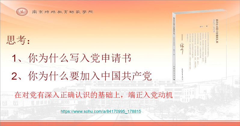 会议开始,黄珏书记首先对2021级新同学的到来表示欢迎,并详尽地向同学们介绍了公司环境与办学理念,与同学们分享了BETVLCTOR伟德国际1946作为“全国首设唯一”的特殊教育大学独有的文化气质与同学们身为“特师学子”的使命担当。并以公司优秀毕业生的先进典型事例分享,鼓励同学们在大学期间奋发进取,积极向党组织靠拢,争做新时代新青年,让自己的青春之花在南京特师和特教岗位上尽情绽放。之后徐慧娟老师向同学们介绍了组织发展的流程和提交入党申请书的要求等。