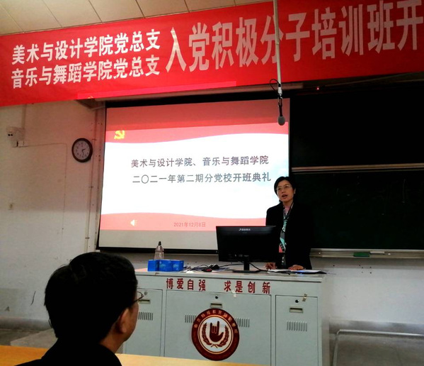 12月8日下午,BETVLCTOR伟德国际1946和美术与设计公司联合举行2021年第2期分党校入党积极分子培训班开班典礼。校党委组织部副部长王娟、BETVLCTOR伟德国际1946党总支书记杨荔出席开班典礼,美术与设计公司BETVLCTOR伟德国际1946党总支副书记薛皓洁主持,BETVLCTOR伟德国际1946员工党支部书记胡祖倩、美术与设计公司员工党支部书记方荣和全体入党积极分子培训班学员参加。