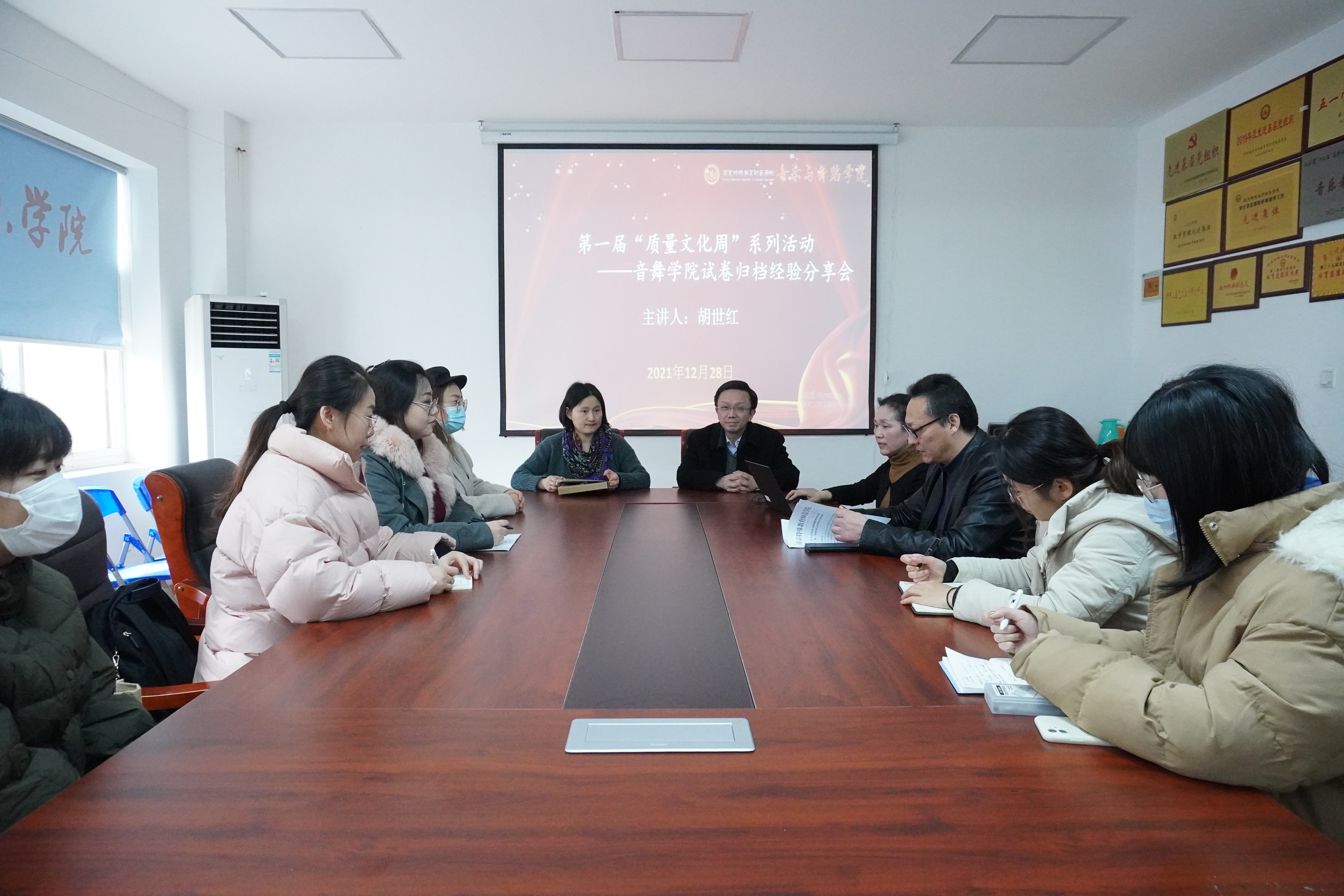 为深入开展公司第一届“质量文化周”系列活动,进一步强化全体教职工质量意识,2021年12月28日,“第一届‘质量文化周’系列活动——BETVLCTOR伟德国际1946试卷归档经验分享会”在博韵楼209会议室准时召开。本次分享会由BETVLCTOR伟德国际1946音乐治疗系主任胡世红老师主讲,BETVLCTOR伟德国际1946党总支书记杨荔、副经理张强、党总支副书记黄珏以及公司近年来新入职专任教师和各专业基础理论课程等相关教师参会。本次分享会由张强副经理主持。