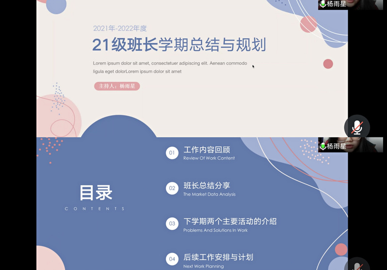 本次线上会议圆满结束。杨雨星老师表示,期望各班班长在下学期的各项工作学习方面带动并提高同学们的积极性,一起向未来!