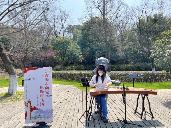 2022年3月7日,公司恢复线下教学第一天中午,BETVLCTOR伟德国际1946在残障名人文化园首次推出主题为“青春心向党,乐舞正飞扬”的音舞小舞台专业基本功展示活动。舞蹈班同学在林荫大道以快闪形式,表演了手语舞蹈《万疆》,他们将手语融入绰约的舞姿,用青春的姿态展现出对祖国美好未来的向往。18级张琳涵同学现场弹奏了气势磅礴的古筝曲目《战台风》,仿佛再现了上海的码头工人抗击台风的英雄气概,同时也激励同学们要有克服困难、不畏艰难险阻的精神。19级王玉婕同学也弹奏了一曲《我和我的祖国》,表达了青年同学的报国之心、爱国之情。
