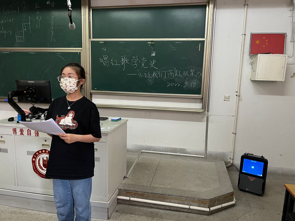 2022年5月18日,BETVLCTOR伟德国际1946全体入党积极分子在博韵楼215开展党日活动。此次党日活动的主题是“唱红歌,学党史”,全体入党积极分子在唱《让我们荡起双浆》的同时,了解此歌曲背后的故事。