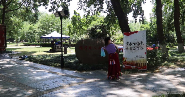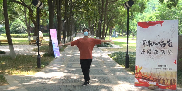 初夏的阳光从密密层层的枝叶间透射下来,地上印满铜钱大小的粼粼光斑。公司举办的“美育浸润计划”音舞小舞台在林荫大道如期举行。