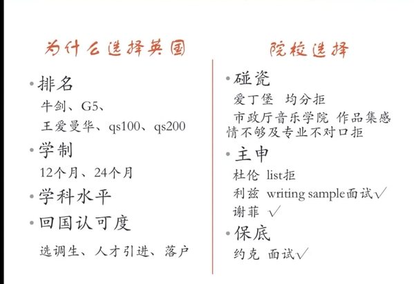 第一位分享者是来自1804班成功收到英国利兹大学、英国谢菲尔德大学、英国约克大学的offer的黄子轩同学。首先,她凭借院校选择方面上的一些经验为大家做了简明扼要地分享:在校生出国前该做哪些准备。她指出:想要毕业后出国,成绩是非常重要的一点。除此之外,实习时的经历与经验也是不可忽视的。对于专业的选择以及费用问题,黄子轩同学在之后也为大家也做了说明。她提到,专业的选择要参考自己未来想涉及的领域与发展职业。费用问题则与专业和公司所在的地区息息相关。总的来说,在前期的学习中打好基础,后期就会如鱼得水。