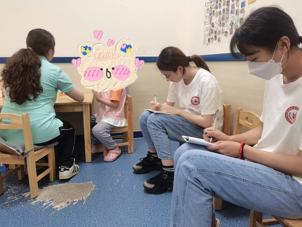 烈日炎炎,却抵挡不住团队成员们洋溢的热情。上午8点30分,团队成员来到了位于秦淮区的校区,在机构老师的介绍下,大致了解了机构的基本概况以及课程情况。成员们分别观摩了语言训练、口肌构音训练、感统训练、社交沟通四门课程,每位成员每天观摩学习的课程都有所不同,在此期间,也学到了很多书本之外的内容。