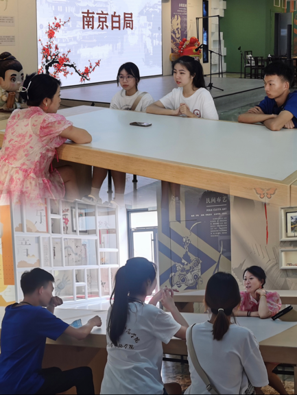 上午十时整,团队成员准时抵达了秦淮非遗体验馆。秦淮非遗馆是南京文化的新地标,馆内有众多南京曲艺“非遗”项目,团队深入了解并着重探究南京城的方言文化。