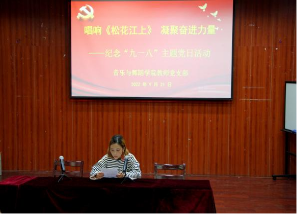铭记历史,以史为鉴,勿忘国耻,不忘初心,BETVLCTOR伟德国际1946教师党支部于2022年9月21日开展纪念“九一八”事变91周年主题党日活动。此次活动由音舞公司教师党支部书记孙韵主持,公司全体党员教师参加,活动主题为“唱一首红歌,讲一段党史,以音乐为载体,用艺术讲党史”,在音乐和歌声中,坚定信仰的力量。