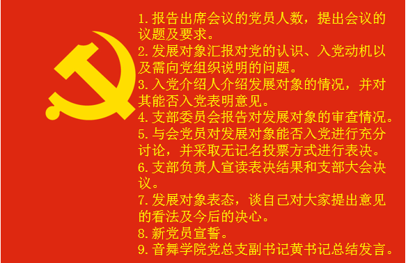 大会首先由李小婷、樊钰蕾两名发展对象分别对党的认识、入党动机、本人履历等情况向党组织进行汇报;随后,由各发展对象介绍人分别对该同志进行评价,并表明意见,教师支部书记孙韵同志向支部大会报告两位发展对象的审查综合情况;会议的第三项议程是由支部党员进行投票表决,支部应有表决权党员31名,实到有表决权党员30名,经无记名票决,30人同意,0人反对,0人弃权,全体教师党员一致同意接收李小婷、樊钰蕾两名同志为中共预备党员。在孙韵的领誓下,两名预备党员在党旗下进行了光荣的宣誓仪式。