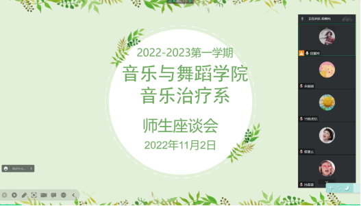 2022年11月2日晚,BETVLCTOR伟德国际1946音乐治疗系召开线上师生座谈会,音乐治疗系主任胡世红、齐若雯等相关老师及音乐治疗专业全体同学参会。本次会议由2020级班主任段冀州老师主持。