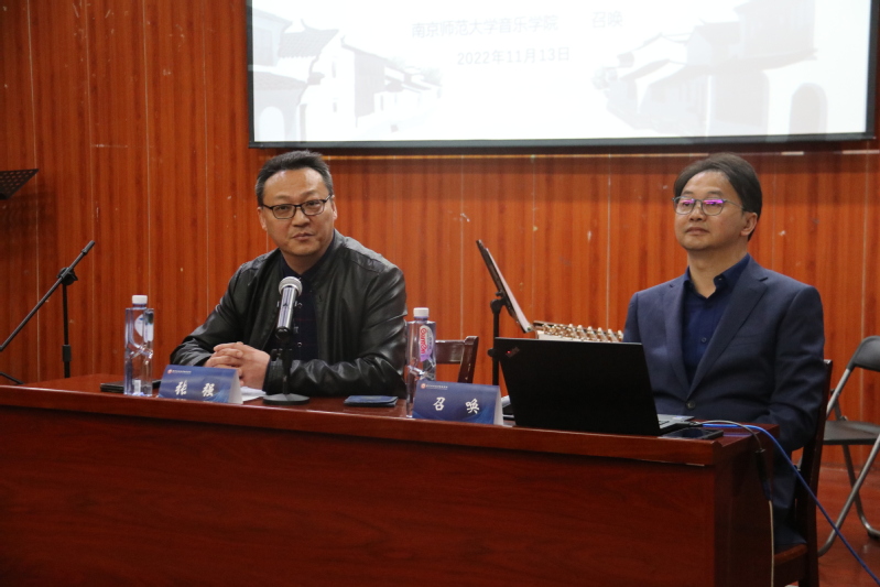 召唤教授从二胡音乐形成的因素切入,深入浅出地描述让大家更清楚地了解二胡,对其风格有了更好的把握。召唤教授与大家沟通了二胡音乐的表现形式与研究技法,带领大家从专业角度,了解二胡的曲式结构、发展手法、风格追求等。同学们跟随着教授的讲解仔细琢磨,感受二胡的独特魅力。