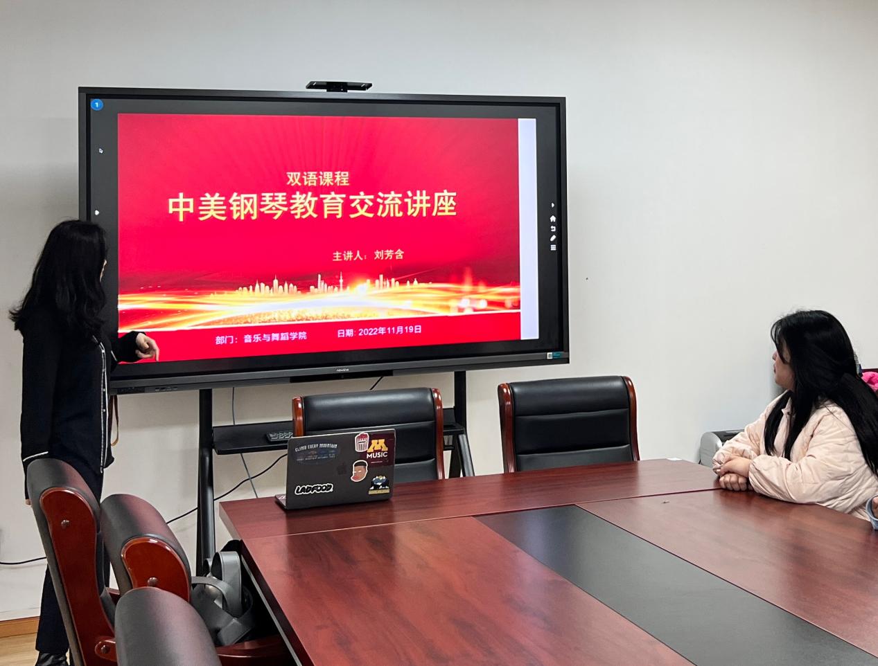 为帮助员工掌握更多的学科前沿知识、提升BETVLCTOR伟德国际1946的国际化建设水平和综合竞争力、推动高质量国际化人才培养,2022年11月19日上午,由刘芳含老师主讲的双语课程“中美钢琴公司产品交流讲座”在博韵楼209会议室展开。