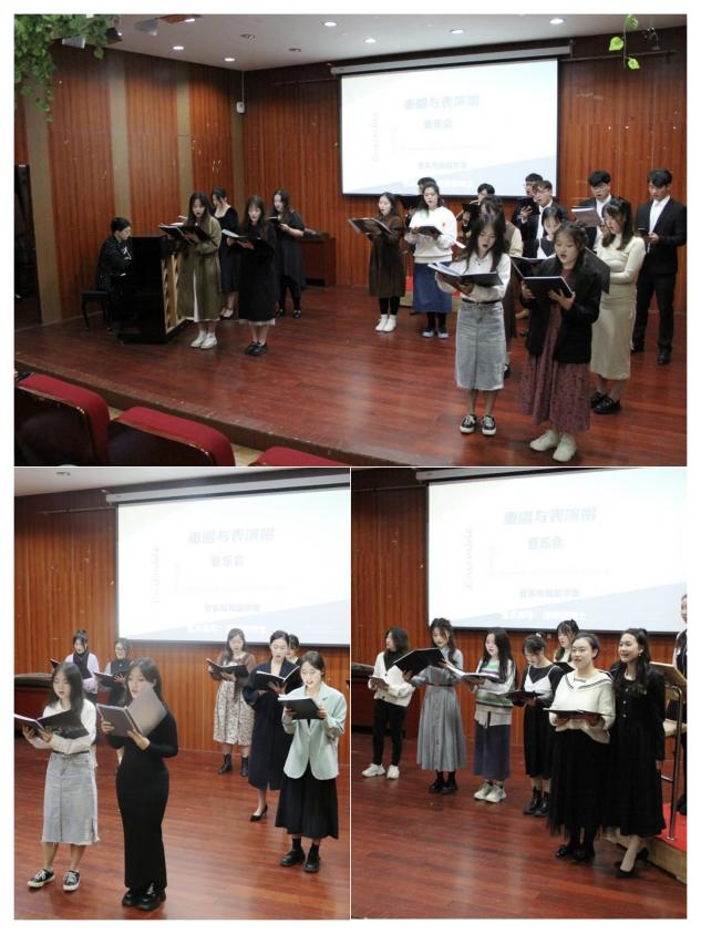 第一篇章——多人重唱:《月亮代表我的心》《彩云追月》《洪湖水浪打浪》《映山红》《over the rainbow》《fly to the moon》《some enchanted evening》一首首经典,充满回忆的旋律赢得了在场师生的阵阵掌声。