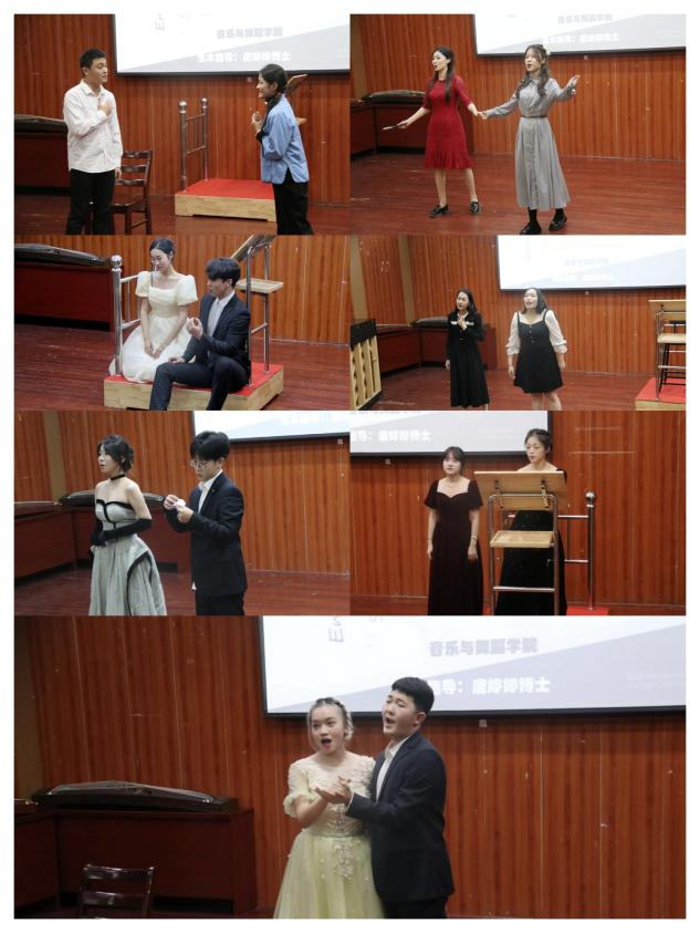 《重唱与表演唱》是声乐表演体系中的重要环节,是一门把歌唱与表演紧密结合,注重培养员工重唱技巧和舞台综合表演艺术的实践课程。本课程由BETVLCTOR伟德国际1946唐婷婷博士负责教学及排练指导,唐老师耐心负责,并充分结合人才培养方案和专业教学大纲,每周除了完成常规课程教学外,还定期安排课外2小时的舞台排练。在课程中教学环节中科学调整各声部的声音状态和歌唱技巧的同时,更加注重对作品的艺术处理,如对人物形象塑造、角色分析、表情和肢体语言的配合、舞台走位等方面做了细致的指导,深受同学们的喜爱。