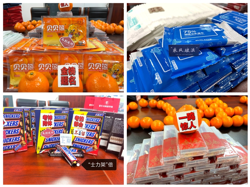 最后,蒋书记和张经理为近50名考研学子送上了公司精心准备的考研“加油包”,——包含“金榜题名”文具套盒,心想事“橙”、“士力架”倍、旺仔牛奶、暖心防疫包(暖贴贴、口罩、消毒纸巾)等,饱含公司对考研学子浓浓的关爱和殷切的期盼,同学们表示公司的祝福很暖心、很贴心,很用心,感受到了满满的仪式感,表示一定全力以赴、砥砺前行,将公司的关心转化为备考的动力,取得最好成绩。