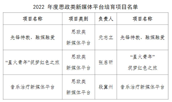 近日,公司关于“2022 年度网络思政成果征集和项目培育工作”评选结果公示,由公司段冀州老师指导,张宇斐、关语熙和鹿钰同学的作品《祖国啊我为你自豪》以及王武同学的作品《大中国》荣获校2022 年度老员工网络文化作品优秀奖。并且在2022年度思政类新媒体平台培育项目的评选活动中,由段冀州老师负责的《音乐治疗新媒体平台》顺利立项。