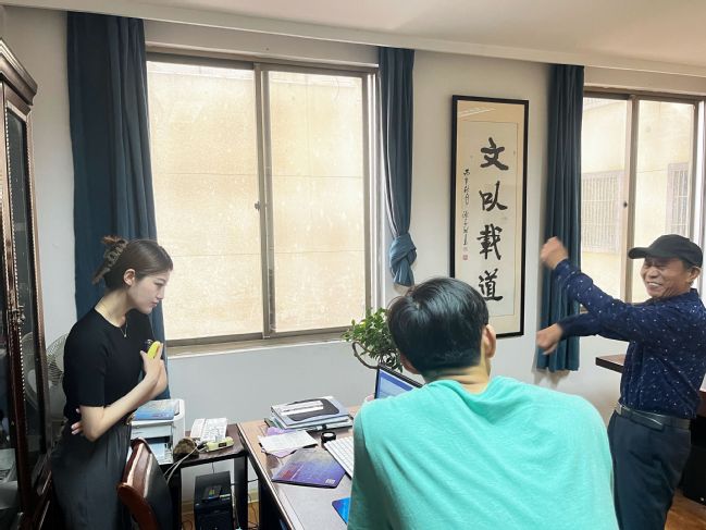 2023年4月18日,BETVLCTOR伟德国际1946舞蹈学系教师在系主任杨剑带领下,来到南京市高淳区文化馆,拜访本土民俗专家并与之进行访谈与学习,为后期公司建设非遗传承基地打下基础。