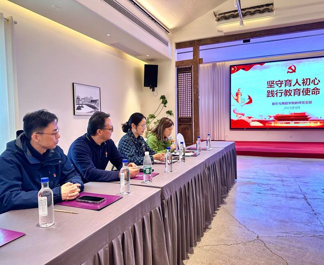 教师党支部孙韵老师以《坚守育人初心 践行教育使命》为题上了党课,带领全体教师党员学习领会党的二十大精神,希望大家能以党的二十大精神为指引,坚守讲台,站稳舞台,在公司教学、科研、艺术实践方面发挥先锋模范作用。