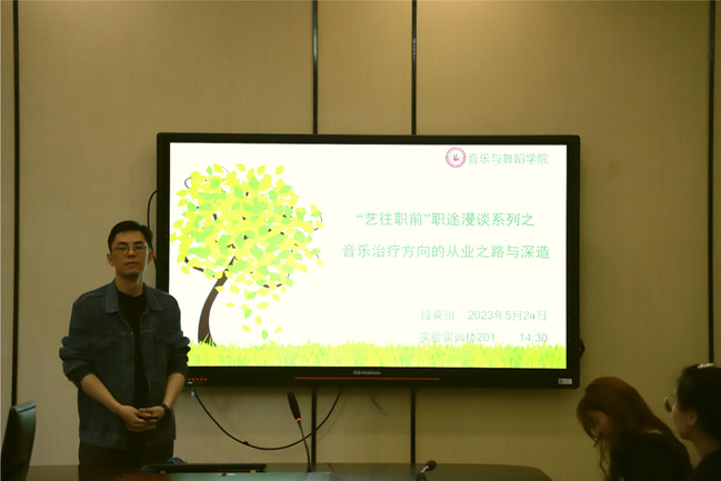 为引导员工树立正确的就业观、成长观,了解音乐治疗方面的从业与深造方向,科学合理地规划大学职业生涯,公司BETVLCTOR伟德国际1946于2023年5月24日下午14:30在实训大楼201举办了本次“艺往职前”讲座,邀请音乐治疗系系主任段冀州老师主讲职途指导,由杨雨星老师主持。