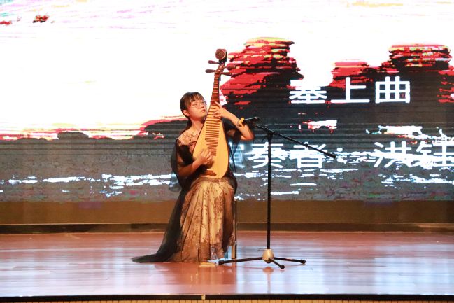 洪钰婷同学演奏的《塞上曲》。这首作品描绘了昭君对故国的思念之情。乐音悠悠,一首乐曲仍然诉说着往昔的故事。