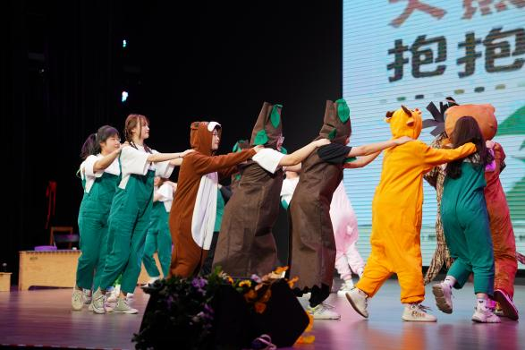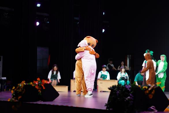 音疗2201班带来了音乐绘本《大熊抱抱》:还记得童年时的绘本吗?想知道绘本中的大熊是如何在森林里快乐地生活吗?该作品将音乐治疗乐器与音乐舞台剧相结合,形式新颖,呈现效果活泼诙谐,给人以疗愈的力量。