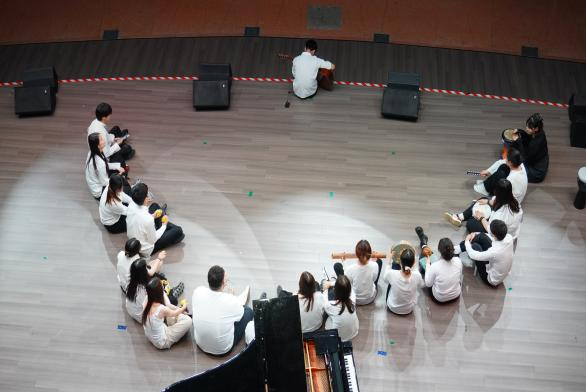 本次系列音乐会上半场(17:30-18:45)是由张敏讷老师指导的来自音舞2106班全体员工带来即兴音乐与钢琴融合音乐会。本次音乐会以钢琴和音乐治疗乐器为主角,全程无主持,用音乐作为引线推动音乐会进程,突出“音乐永不停歇”主题,运用了即兴演奏音乐治疗的技术,跳出固有的音乐会框架,带来了一次“沉浸式”的音乐体验。