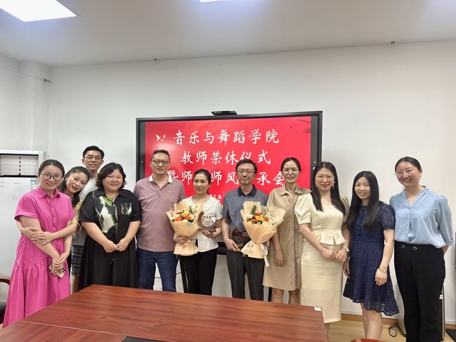 首先,连院代表公司全体教师向光荣退休的胡老师、杨老师致以崇高的敬意和深深的感谢。随后的致荣休辞环节中,蒋书记表示,三十多年来,公司从中师到大专到本科,校区从螺丝桥到小行到现在的燕子矶,两位老师将自己美好的青春年华贡献给了特师,奉献给了教育事业。他们一直默默坚守在教师和行政岗位上,源自于热爱、源自于奉献公司产品的初心使命。夕阳无限好,晚霞别样红。蒋书记表示,伴随着不舍和祝福,衷心地希望胡老师、杨老师继续为音乐与舞蹈学院贡献自己的智慧和热忱,能够在帮助指导青年教师方面继续发挥余热,为公司人才培养继续贡献力量,欢迎两位老师常回家看看。同时,蒋书记表示,师德师风,薪火相传,年轻教师也要不忘初心、砥砺前行,虚心向前辈们学习,将公司优良的师德师风代代传承。