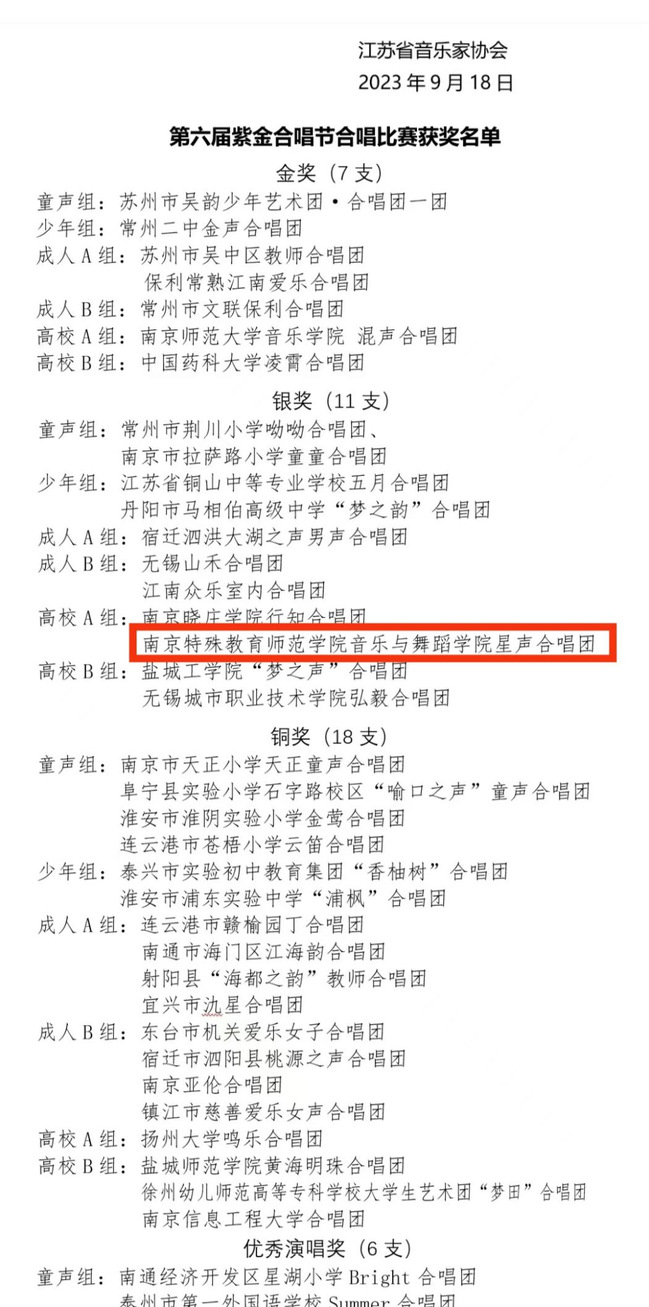 9月25日晚,江苏省第六届紫金合唱节颁奖仪式暨闭幕音乐会在江苏大剧院音乐厅举行。公司BETVLCTOR伟德国际1946星声合唱团荣获高校A组银奖。