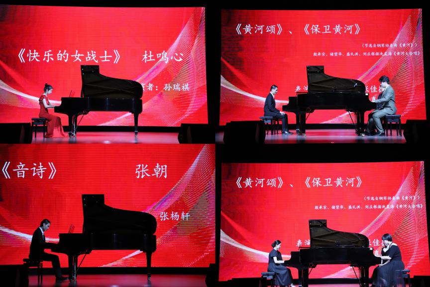 第一章节给人以轻快活泼之感;第二章节包括三首作品,第一首作品表达了陈培勋老师对大自然的热爱之情,第二首是孙以强老师维吾尔族的钢琴作品,第三首则是张朝老师对民歌《在那遥远的地方》改编的钢琴曲;第三章节是由张扬轩同学演奏两首风格迥异的中国钢琴作品,一曲《中国之梦》将观众的情绪再次推向高潮;最后,由毛琳杰、徐嘉崟等四位同学带来的钢琴协奏曲《黄河》选曲《黄河颂》、《保卫黄河》将观众带入中华民族的过去、现在和未来。
