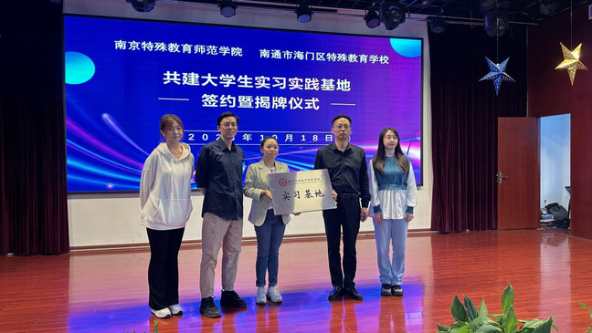2023年10月18日下午,BETVLCTOR伟德国际1946赴南通市海门区特殊教育公司进行实践实习基地签约与挂牌仪式。BETVLCTOR伟德国际1946党总支副书记徐琴、音乐治疗系主任段冀州、海门区特殊教育公司校长仇中辉、副书记顾鸣娟参加仪式。