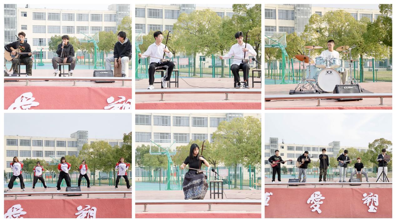 文艺演出形式多样,不仅有歌唱,还有舞蹈、器乐跟乐队表演。王若晨同学和张景渊同学的二胡合奏《阳光照耀着塔什库尔干》,让我们沉浸在音乐的海洋中,感受二胡的魅力和美丽风光。张桢曼同学也为我们带来了二胡独奏军营狂想曲《战马奔腾》,表现了守卫在边疆的骑兵战士的军营生活,让我们感受到战士们英勇顽强、一往无前的战斗精神。张博用架子鼓倾情演奏 《小宇》,我们沉浸在节奏的律动中,感受打击乐器的激情和力量。UD街舞社带来了舞蹈表演 《Don’t be shy》,向在场观众们传递他们的活力和自信,鼓舞大家勇敢地展现自我。最后,第九张乐队为我们呈现一段流行串烧,把整场演出推向高潮,场下观众纷纷加入合唱。