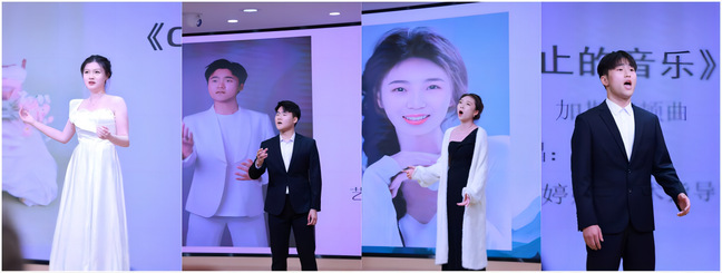 本次汇报音乐会由21级、22级24名推优生依次演唱,24首不同风格,同学们的表演充满了激情与细腻,时而高亢激昂,如同万马奔腾;时而低回婉转,如潺潺流水。他们以深情款款的演绎,打动了在场每一个人的心,每一次共鸣都像是琴弦上的舞蹈,为现场观众带来无尽的享受。同学们的舞台表现从容自信,技术技巧与作品融会贯通,较好的把握作品和舞台,作品的情感表达连贯饱满,出色的演唱技巧和舞台表现得到了现场领导、老师、同学们的热烈掌声。