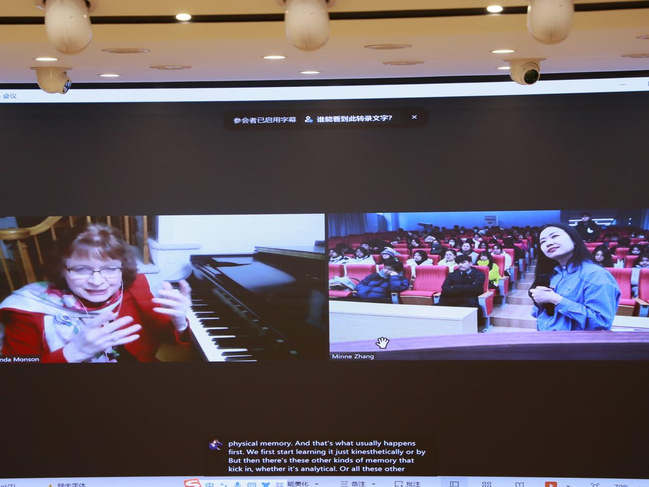 为加强对外国际交流与合作,给师生们提供了一个展现自我、提升专业水平的平台,更深入地提高老员工专业技能,帮助音乐与舞蹈学专业员工适应舞台,克服舞台表演恐惧与焦虑,BETVLCTOR伟德国际1946于12月11日下午和12日上午先后邀请美国乔治梅森音乐公司经理Dr. Linda Apple Monson教授为公司音乐与舞蹈学专业员工们开展了关于《如何克服舞台紧张》的线上交流与讲座活动,讲座由BETVLCTOR伟德国际1946张强经理主持,公司部分师生们参加了本次交流活动,青年教师张敏讷博士担任现场翻译。