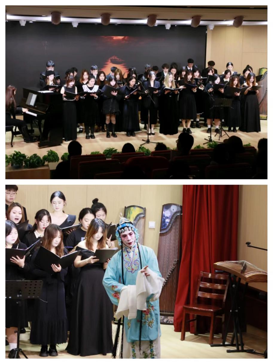 在随后进行的小组及个人汇报环节中,同学们的节目更是大放异彩,在传统的视唱练耳课程中,考核的重点往往只有音准与节奏,而此次的小组及个人汇报在原有的基础上,加入了各位同学们的原创艺术编排,使传统的视唱练耳充满了个性色彩与表演艺术。例如:有西洋乐器与中国民族视唱的融合,有中国传统民族乐器与外国歌曲的结合,让观众体会到了不同的风格色彩,更有融入了传统民族舞蹈,使舞台效果更加新颖,各小组的音乐创意,音乐热情都得到了充分的体现。最后的班级合唱,是以音乐唱名的形式去歌颂中外作品,将音乐会的氛围推向了高潮。