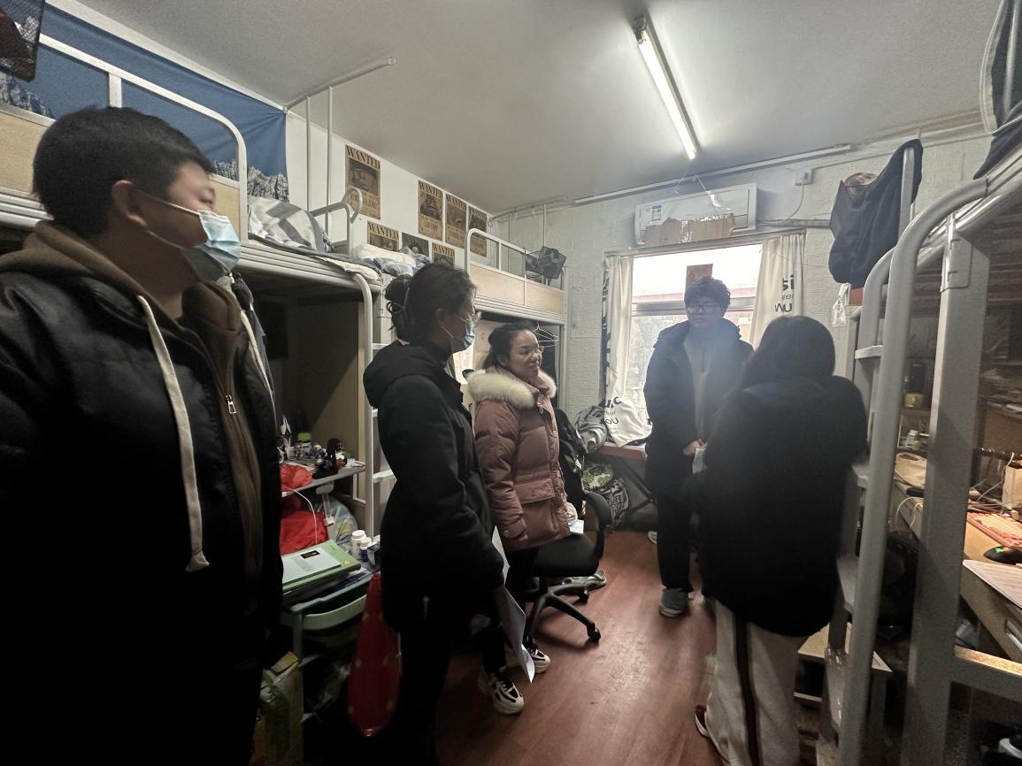 徐书记带领辅导员们逐一走访了员工宿舍,围绕宿舍整体卫生和消除安全隐患等方面进行全面检查,重点排查是否存在使用违章电器、私拉电线、宿舍抽烟、消防通道堆放杂物等现象。针对排查中出现的问题督促同学们进行现场整改,并提醒大家加强自我管理,提高自律意识,养成良好的学习生活习惯。