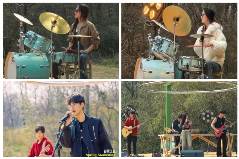 活动现场一片绿意盎然,音乐与美景相得益彰。随着乐队演唱《爱人错过》《等我回家》《红玫瑰》《指纹》的节奏,树叶轻轻摇曳,仿佛在为演出者们伴舞。在表演中,乐队成员们以精湛的技艺和默契的配合,为观众带来了一场视听盛宴。他们演奏的原创歌曲旋律激昂,爆发力量,展现了老员工的青春活力和无限创造力。现场气氛热烈,观众们纷纷举起手机录制,随着音乐节奏摇摆,沉浸在音乐的世界中。
