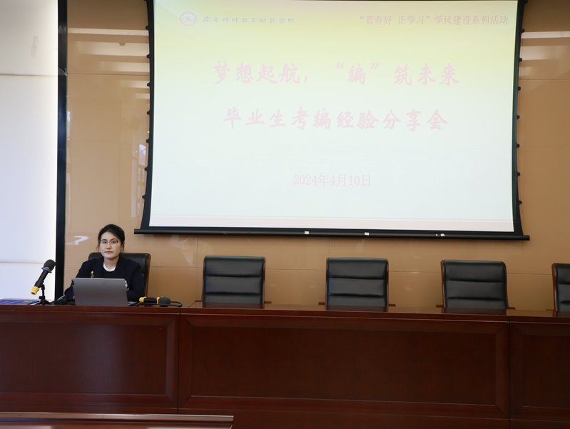 王娅麟同学以南京考编为例,分享了如何查找教师招聘信息、避免信息差,介绍了各个地区的考试情况和备考的流程。她表示,考编需要明确目标、充分准备、注重细节,同时也要注意调整考试心态,在备考过程中要善于总结与反思,形成自己的答题风格。她鼓励大家在面试环节一定要保持自信,勇于尝试,科学选择。