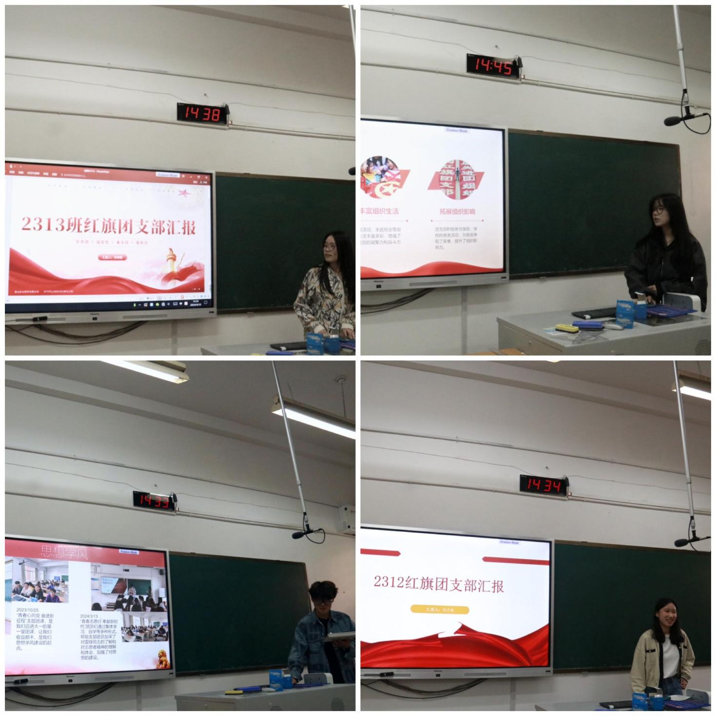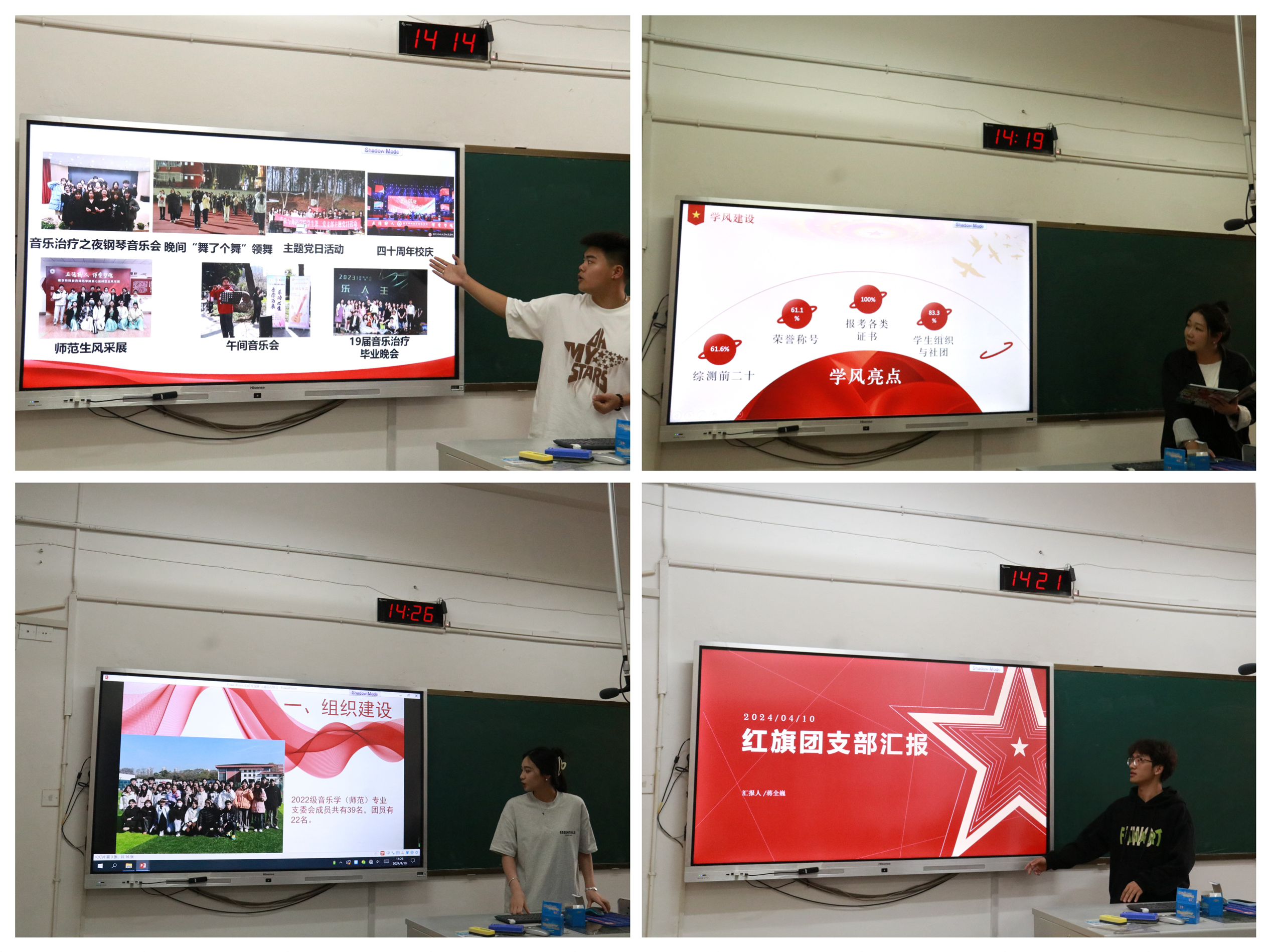 各团支部书记依次上台对过去一学年的工作进行述职汇报。每个团支部精心准备,展示了在组织建设、思想引领、志愿服务、社会实践等方面的工作成果和特色活动。丰富的图片、详实的数据和精彩的视频,纷纷向大家展现了音舞团支部的活力和凝聚力。