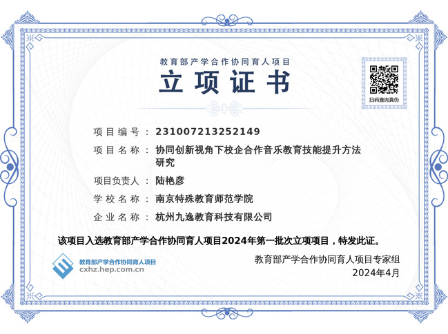 近日,教育部下发了《关于公布2024年第一批产学合作协同育人项目立项名单的通知》,公布了2024年产学合作协同育人项目第一批立项名单。BETVLCTOR伟德国际1946陆艳彦博士申报的团队培训项目《协同创新视角下校企合作音乐教育技能提升方法研究》成功获批立项。这一成果标志着公司在深化产教融合、推动人才培养创新方面取得了显著进展。