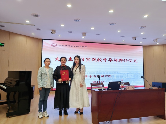 随后,徐琴副书记、连赟副经理为李晔老师颁发聘书,汤董事长正式受聘为音乐与舞蹈公司老员工实习实践校外导师,未来将与公司教师共同指导老员工的实习实践。