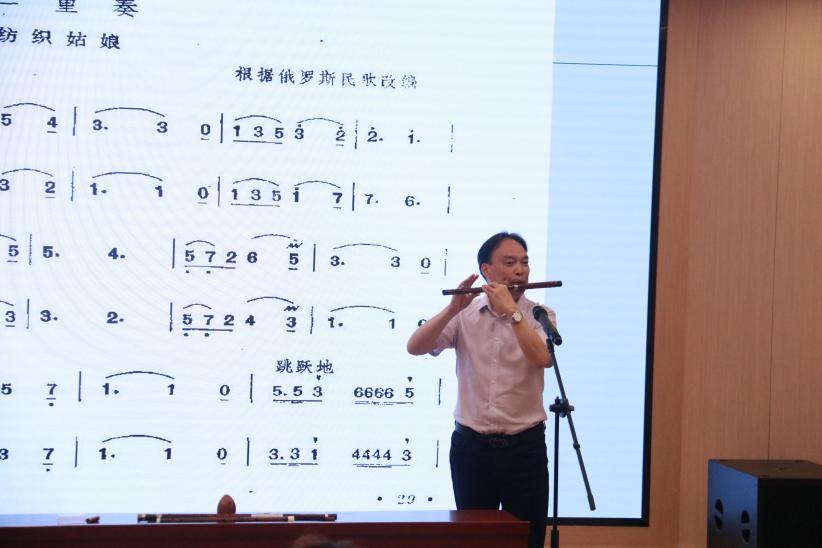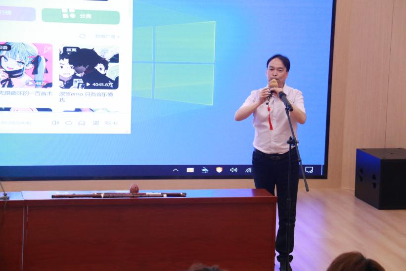 讲座中,毛云岗教授详细介绍了音乐教资的面试流程、注意事项、常见问题与对应策略,并针对器乐作品赏析、器乐演奏、器乐编配等教学要点以及毕业论文的写作技巧进行了细致讲解。特别在弹唱考试方面,毛教授总结了六点关键要领和技巧,同学们全神贯注,积极互动,现场气氛热烈。最后,毛教授以个人才艺展示的形式,用不同乐器演奏了少数民族各具特色的音乐,让在场的师生感受到了音乐的魅力。