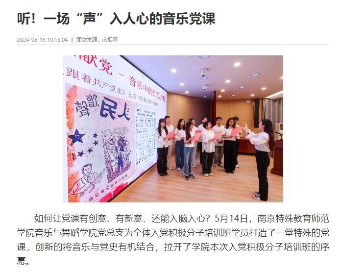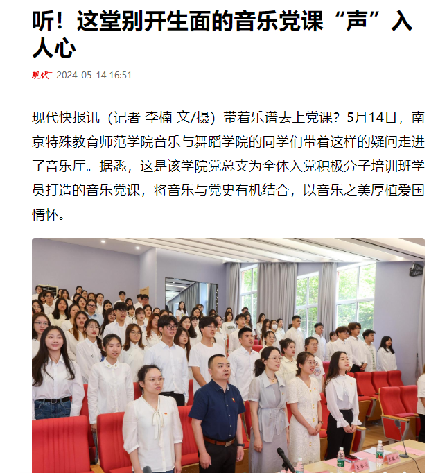 本次音乐党课开班收到了南京日报、现代快报等媒体的报道。