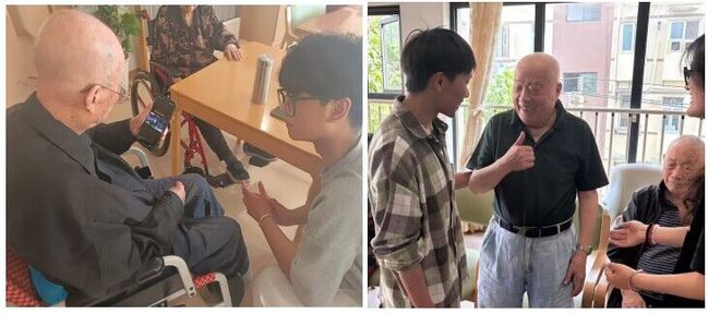 演出结束后,师生们并未急于离开,而是选择留下来与老人们进行深入的交流,聆听他们的抗战故事与人生经历。其中,一位102岁高龄的老爷爷更是与大家分享了年轻时喜爱的歌曲《松花江上》,展示了老一辈的活力与风采。