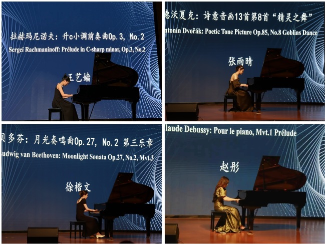 厉晶晶演奏的贝多芬《奏鸣曲Op.2, no.2 第一乐章》散发着深邃与幽默的音乐力量,王艺嫱演奏的拉赫玛尼诺夫的《前奏曲Op.3, no.2》以丰富的和声变化展示出浪漫主义情怀,其演奏令人陶醉。上半场的最后,徐楷文以精湛的技艺完美演绎了贝多芬《月光奏鸣曲第三乐章》更是让观众沉浸在贝多芬慷慨激昂的音乐魅力之中。