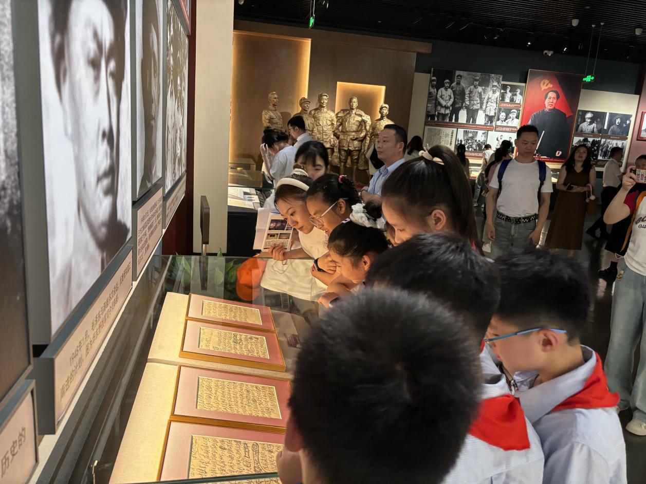 在渡江胜利纪念馆,老员工团队成员和少先队员们一同沉浸在馆内丰富的历史文物和珍贵的照片之中。每一件展品都承载着历史的厚重,它们静静地诉说着那段波澜壮阔的岁月,战士们使用的武器、血染的战衣、磨破的草鞋,无不展现着革命战士们英勇无畏、艰苦奋斗的精神风貌。