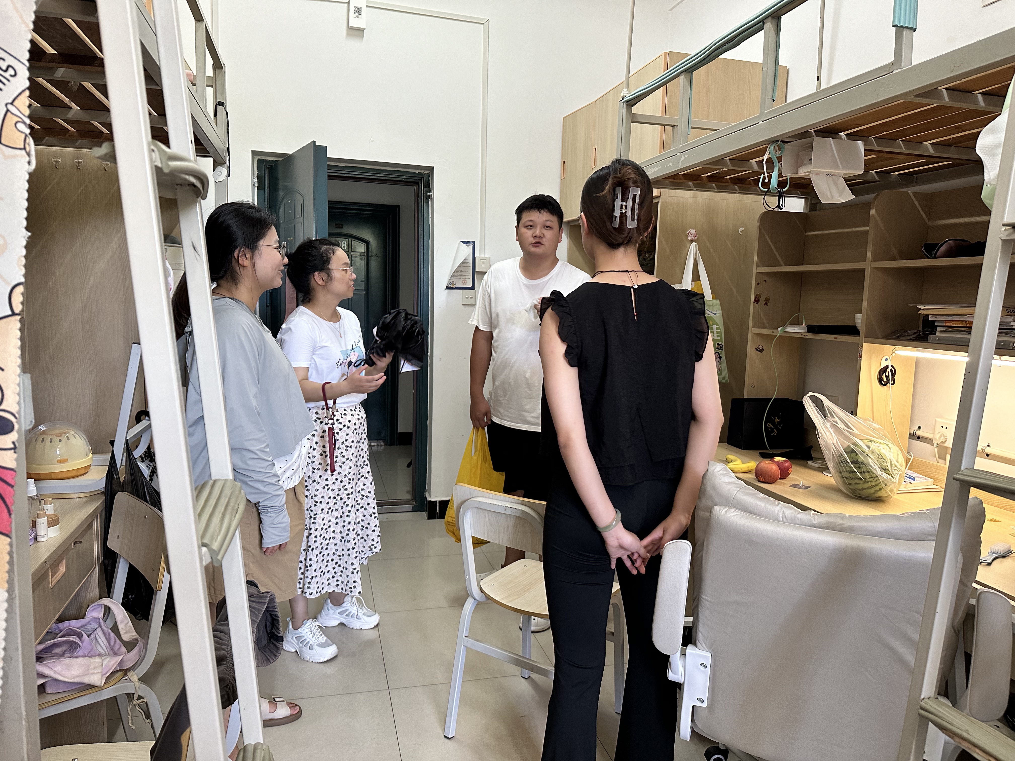 为深入了解暑期留校员工的思想动态与学习生活情况,加强员工安全教育管理,7月22日,BETVLCTOR伟德国际1946党总支副书记徐琴、学工办主任(团总支书记)邓露、员工第一党支部书记胡祖倩、辅导员王阳光深入员工宿舍,走访慰问暑期留校员工。