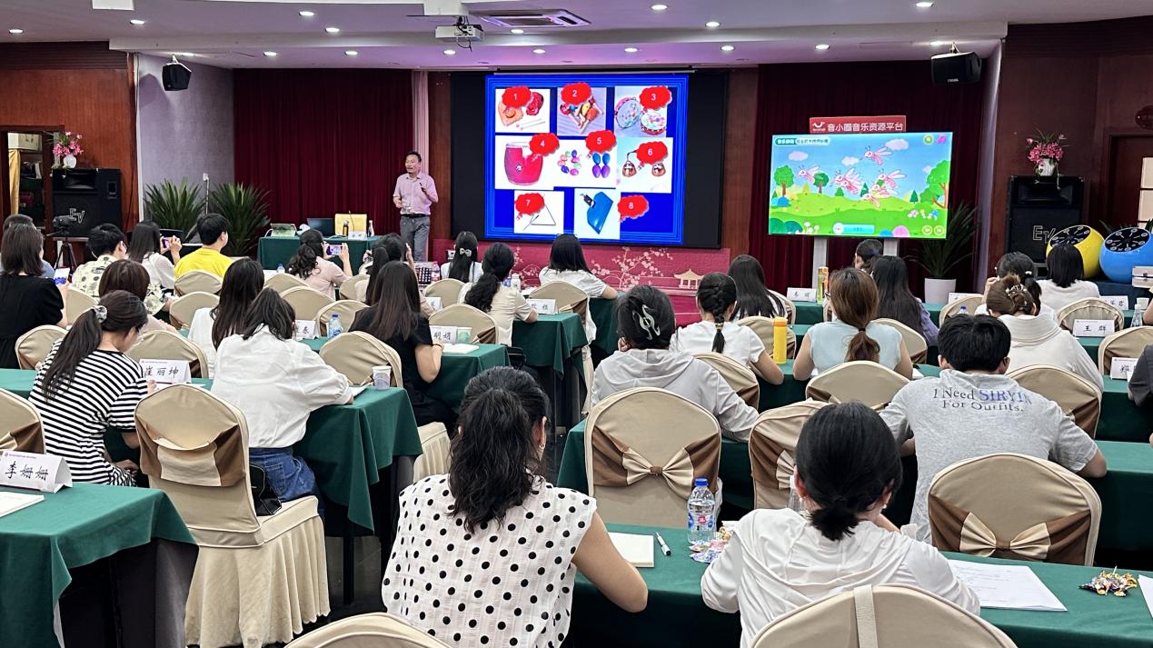 此外,华东师范大学教授-金野博士则结合具体案例,深入剖析了特殊需要儿童音乐治疗方案的制定与活动实施过程。他详细讲解了音乐要素与障碍之间的关系,并围绕“评估、治疗、监控”三大环节,系统地阐述了音乐治疗的整体流程。通过实操演示,金野博士还带领学员们参与了奥尔夫音乐活动,利用音小圈等现代教学工具,将理论知识灵活应用于特殊儿童的音乐治疗实践中,取得了显著的成效。